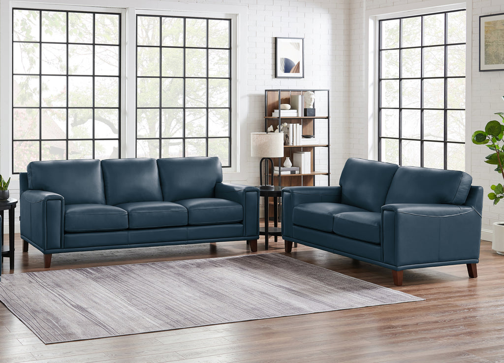 • Premium Leather: Top-grain leather is upholstered on the seating areas and armrests. Split-grain leather is used on the sides and back.