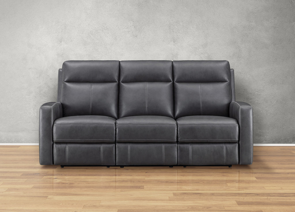 - Premium Leather: Top-grain leather is upholstered on the seating areas and armrests. Leather match is used on the sides and back.